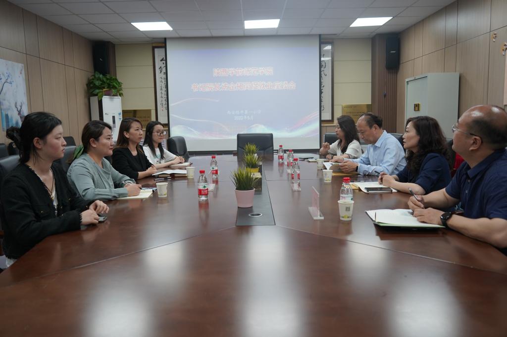 在西安经开第一小学,王凯书记一行在常务副校长李义华、教导主任崔玥的陪同下,实地参观了该校的办学特色展示,随后与经开一小的领导、学校校友进行了座谈。座谈会上,李校长详细介绍了该校的办学理念、教师队伍状况、教学工作特色亮点以及近年来取得的成绩,并对学校输送的毕业生给予充分肯定和高度赞扬。牛文明院长介绍了文学院的历史沿革、人才培养基本情况和本届毕业生就业现状,希望双方能够加强合作的深度与广度,促进毕业生高质量就业的同时,更好地服务社会。在经开一小工作和学习的毕业生周舒飞、白雪纯分别发言,交流了自己在经开一小工作和学习的感悟,并对母校的悉心教导和老师们的细心栽培表示感谢。王凯书记代表学校对经开一小对荣耀(中国)就业和实习工作的大力支持表示感谢,他围绕本次访企拓岗专项行动,分析了今年就业工作的严峻形势和学校目前就业工作中的难点与不足,希望供需双方充分发挥好资源优势,进一步加深融合互助,拓宽合作领域,创新合作模式,携手推进人才培养,努力形成促进毕业生就业、助力用人单位选才的双赢局面。