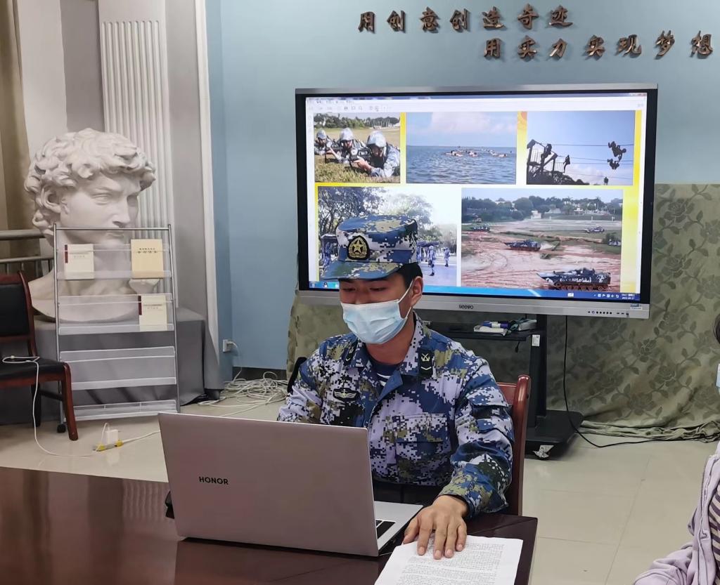 “放飞青春梦想,铸就军旅辉煌”。为全面贯彻落实习近平强军思想,推进新时代的强军事业,激发学生参军报国的热情,进一步做好我院大学生征兵入伍工作,美术学院于2022年4月27日在学院会议室开展了“榜样的力量”系列活动之大学生征兵入伍宣讲会。此次宣讲会邀请了党委学工部征兵宣讲团的成员们以线上线下相结合的方式为美术学院学生进行征兵入伍宣传,不仅引导同学们立志成为有理想、有志向的爱国好青年,也为我院征兵工作创造了良好的局面,营造了浓厚的氛围。