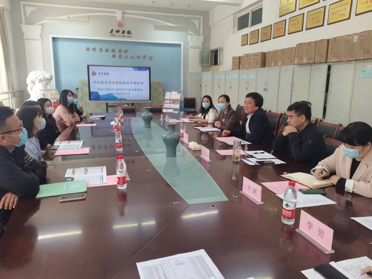 美术学院于4月26日上午在启真楼美术学院会议室举办2022年春季第二场美术类专场招聘会。招聘会邀请西安欣星索教育培训学校有限公司、西安艺之都艺术文化传媒有限公司、西安新音海科技教育有限公司三家单位参加。