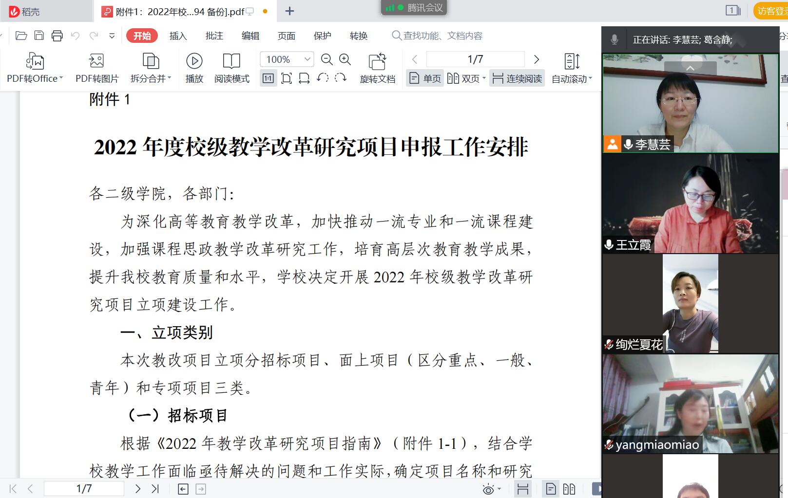 2022年1月13日晚,生命科学与食品工程学院在云端平台召开了2022 年教学改革研究项目和课程建设项目申报工作推进会,生科院王立志院长、王立霞副院长、赵红岩副院长、3个系系主任、副主任参加了此次会议,会议由副院长赵红岩主持。