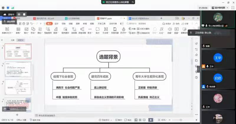 此次线上毕业论文开题的顺利展开为同学们明确了论文撰写的基本思路,加深了指导教师和学生的深入交流,为后期完成毕业论文奠定了坚实的基础。同时对提高我院毕业论文的质量,规范毕业论文的写作起了积极的作用。