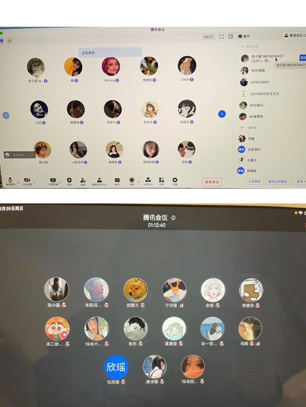 三是开展线上主题班会,有效掌握学生思想动态。突如其来的疫情暴发以来,全体辅导员利用腾讯会议等线上平台,给同学们耐心讲解学校关于疫情防控的相关政策,及时回应学生关切的热点问题,密切关注学生健康状况,了解学生近日思想动态,与同学们敞开心扉进行谈心谈话,缓解同学们的心理压力,做好心理疏导工作,鼓励学生刻苦学习,将学校领导关心和关怀传递给每一位同学。