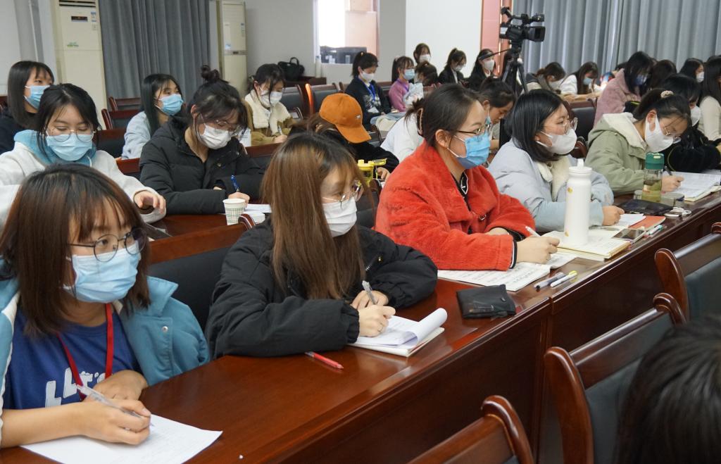 为深入学习贯彻党的十九届六中全会精神,深刻领会和全面把握中国共产党百年奋斗的重大成就和历史经验,2021年11月24日下午14:00,由党委宣传部主办,幼儿教育学院承办的党的十九届六中全会精神专题讲座在校图书馆西侧三楼报告厅举行。幼儿教育学院党政领导班子成员、各党支部书记和全体辅导员等50多名师生党员代表聆听学习了由省委学习贯彻十九届六中全会精神宣讲团成员、西安交通大学马克思主义学院李永胜教授做得题为《学深悟透党百年奋斗的重大成就和历史经验》的宣讲报告。报告由校党委书记付建成同志主持。
