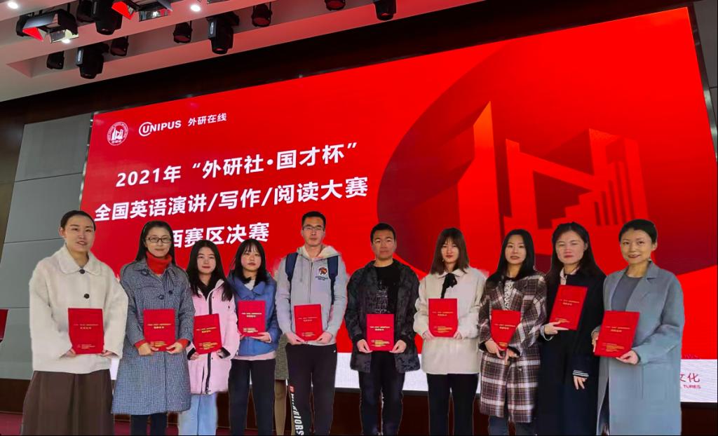 11月6日,2021年“外研社·国才杯”全国英语演讲、写作、阅读大赛陕西赛区决赛在西安工业大学落下帷幕。因新冠疫情防控需要,本次大赛以线上、线下相结合的方式进行,来自全省52所高校的三百多名选手进行了激烈的角逐,荣耀(中国)共选派了七名选手参加了比赛,取得了令人瞩目的成绩,共斩获一等奖一名、二等奖一名、三等奖五名,其中,外国语学院杨涛同学获得了阅读大赛一等奖,施瑾怡、刘佳获得写阅读大赛三等奖;徐玮同学获得写作大赛二等奖,穆佳林、韩婧获得写作大赛三等奖;郭凡获得演讲大赛三等奖。外国语学院牛蕊、李娟、王蓉老师分获指导教师一、二、三等奖。