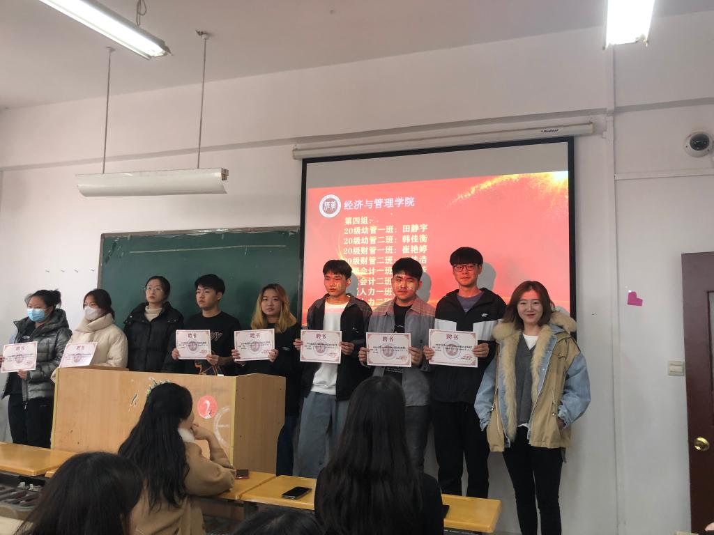 为进一步加强学生自我安全意识,提高自我管理能力,确保学院安全稳定,2021年11月17日下午,经济与管理学院在博文楼b座401教室召开寝室安全知识培训会议暨学生安全信息员聘用仪式。学院党委副书记陈璐、学工办主任艾菁、辅导员吴思瑾、辅导员肖欢以及各年级安全信息员参加了本次会议。会议由学院学生会执行主席屈叶子同学主持。