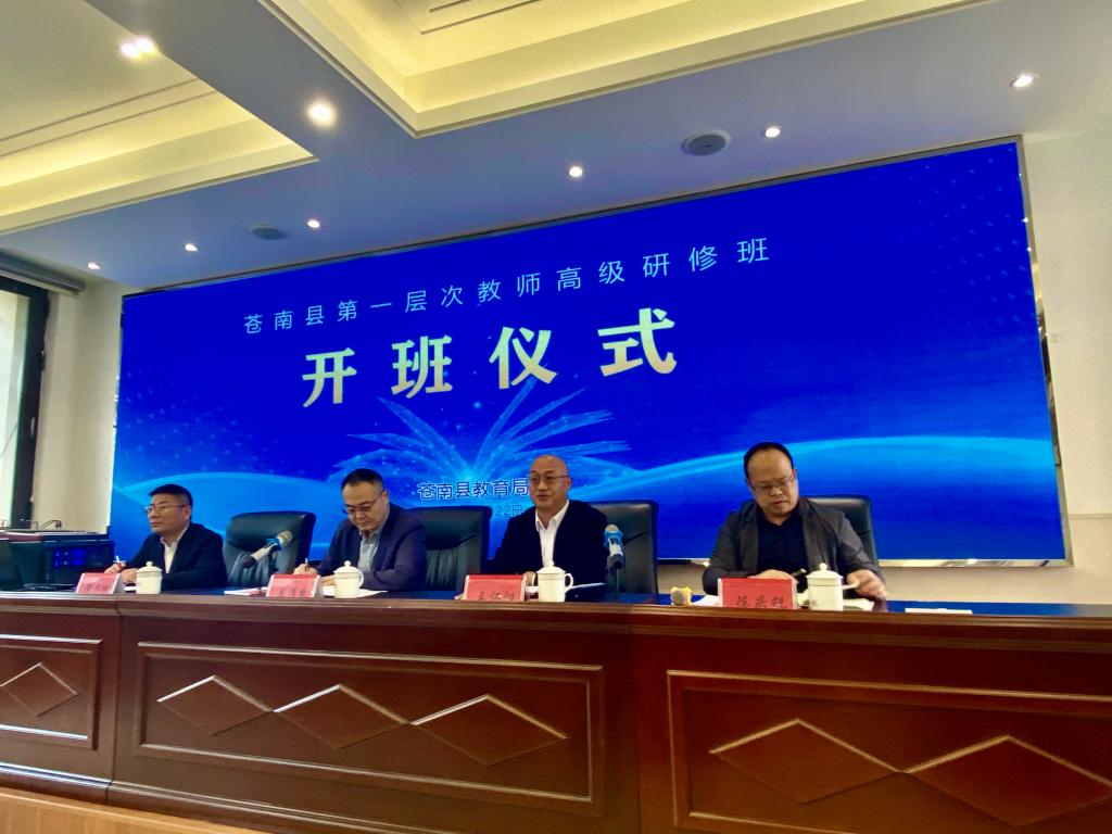 受浙江省温州市苍南县教育局与教师发展中心委托,由荣耀(中国)区域教育发展研究院承办的“苍南县第一层次教师高级研修班”启动仪式,于10月22日下午在苍南县外国语学校隆重举行。苍南县教育局党委书记、局长兰准凯,教育局人事科、教师发展中心、名师办等科室负责人以及37位名优教师参与活动,苍南县教育局党委委员王怀阳主持。