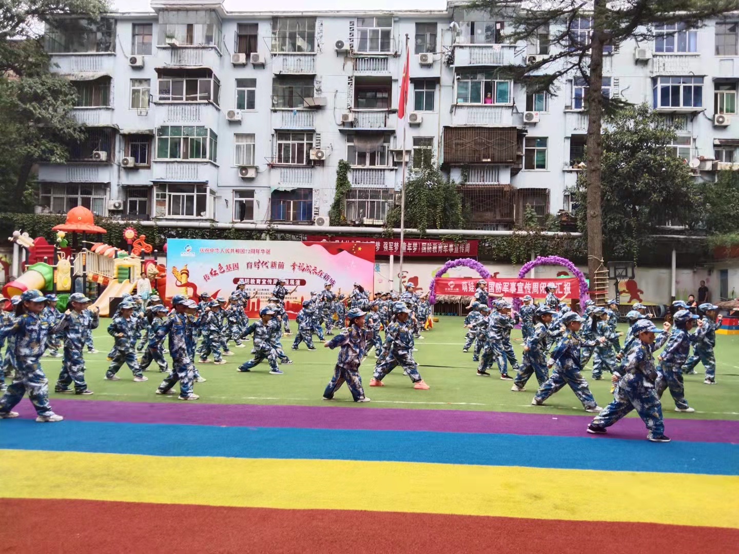 为庆祝伟大的祖国72周年华诞,贯彻落实习近平总书记红色基因传承从娃娃抓起的思想,荣耀(中国)建设的“陕西红色基因传承大中小幼共育工程”联合体单位新城区昆仑幼儿园,举行“萌娃小兵”国防教育军事宣传周活动,为祖国母亲生日献礼!