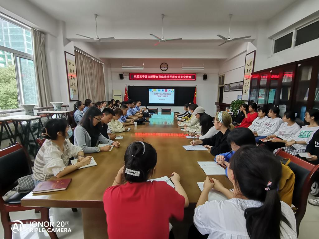 为提高师生反诈防骗能力,切实维护校园安全和师生财产安全,9月17日下午4:00,西安市长安区常宁派出所几位民警来到幼儿教育学院开展“反诈宣传教育”活动。党总支副书记苏群、各年级辅导员及70余名学生代表参与了此次宣传教育活动。