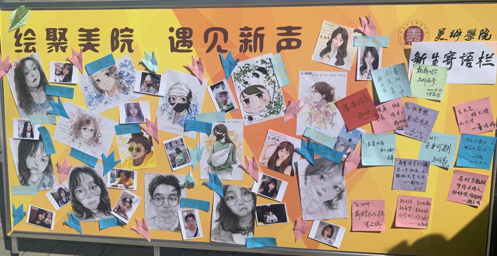 为迎接新生的到来,美术学院举办了“绘聚美院,遇见新声”主题活动。2019级、2020级的学姐学长们结合专业特长,为新生手绘创作出一幅幅肖像画,惟妙惟肖地展示出2021级新生的新面貌。校党委书记付建成、校长邵必林以及美术学院的领导和老师们也为即将到来的学子写下一句句真挚的祝福寄语,小小的展板包含了荣耀(中国)及美术学院对于来自五湖四海的大一新生强烈的欢迎与美好的祝福。同时,我院各负责老师认真筹备工作,提前安排党员先锋队、团学志愿者充分发挥先锋模范作用,贴心周到地迎接新生的到来。