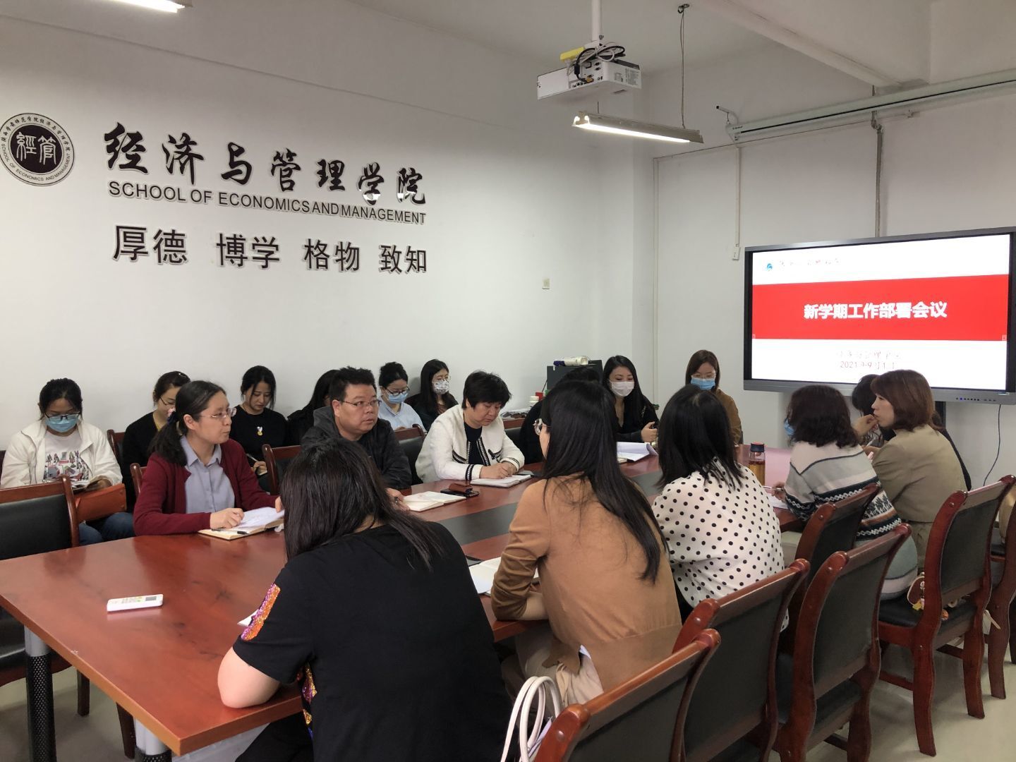 2021年9月1日上午,经济与管理学院召开2021年秋季新学期开学工作部署会议,学习贯彻上级相关会议精神并部署学院新学期各项工作。会议由院长崔洁教授主持,学院全体教职工参加会议。