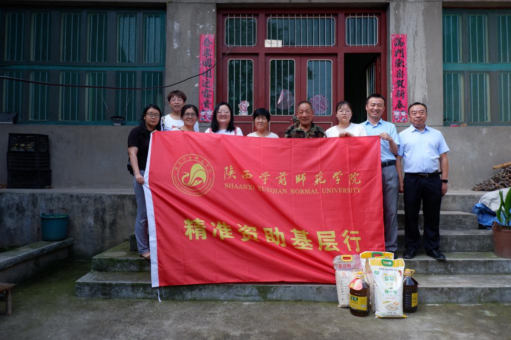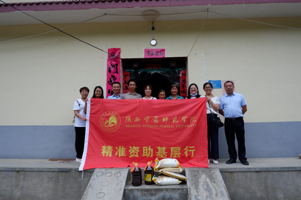 2021年7月25日,幼儿教育学院院长何善平、党总支副书记(主持工作)王继康、副书记苏群、学工办主任程旭楠,辅导员白雪祺、段海燕一行六人前往西安市长安区王莽街道土门峪村、商洛市柞水县马房湾村看望陈佳、邹涯萍两位建档立卡学生并送去慰问品,向贫困学生家庭宣传国家资助政策。