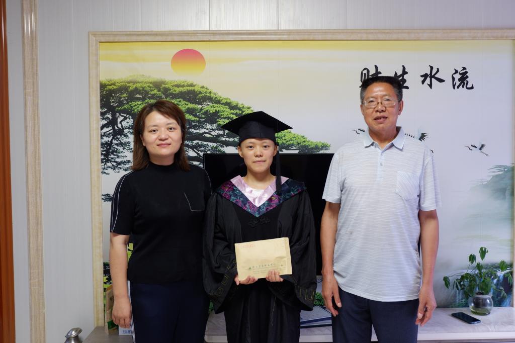 授予仪式伊始,辅导员段海燕帮助方阳燕同学穿好学士服、带好学士帽,让孩子的脸上瞬间流露出久违的笑容。