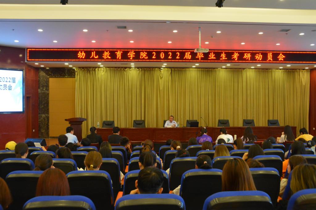为进一步提高教育教学质量,促进学生高质量就业,同时充分调动2022届毕业生的考研积极性,力求考研工作有新的突破,2021年5月8日,幼儿教育学院在图书馆报告厅举办2022届毕业生考研动员大会。幼儿教育学院院长何善平、幼儿教育学院党总支副书记(主持工作)王继康、党总支副书记苏群,2021届考取研究生的5名学生代表及2018级全体本科生参加了本次大会。会议由辅导员李通主持。