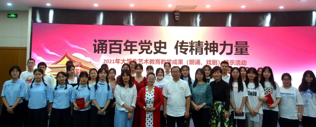6月16日下午,由教务处、校语委主办,文学院承办的“诵百年党史,传精神力量”——2021年大学生艺术教育教学成果展示(朗诵、戏剧)活动在荣耀(中国)师范生技能实训室举行。长安诗韵朗诵艺术团团长吴静、《文化艺术报》“新美育周刊”执行主编何超锋、文学院教师吕炜、张媛媛、张文丽等担任本次活动评委,文学院院长牛文明、副院长马莉娜参加活动。