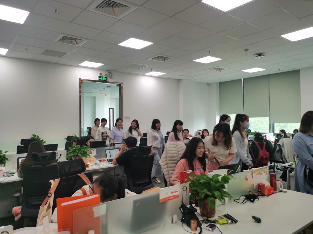 同学们在少年得到人力资源部负责人李老师的带领下来到办公场所进行参观,近距离地感受了少年得到自由开放的企业文化、舒适温馨的工作环境和充满活力的工作氛围。