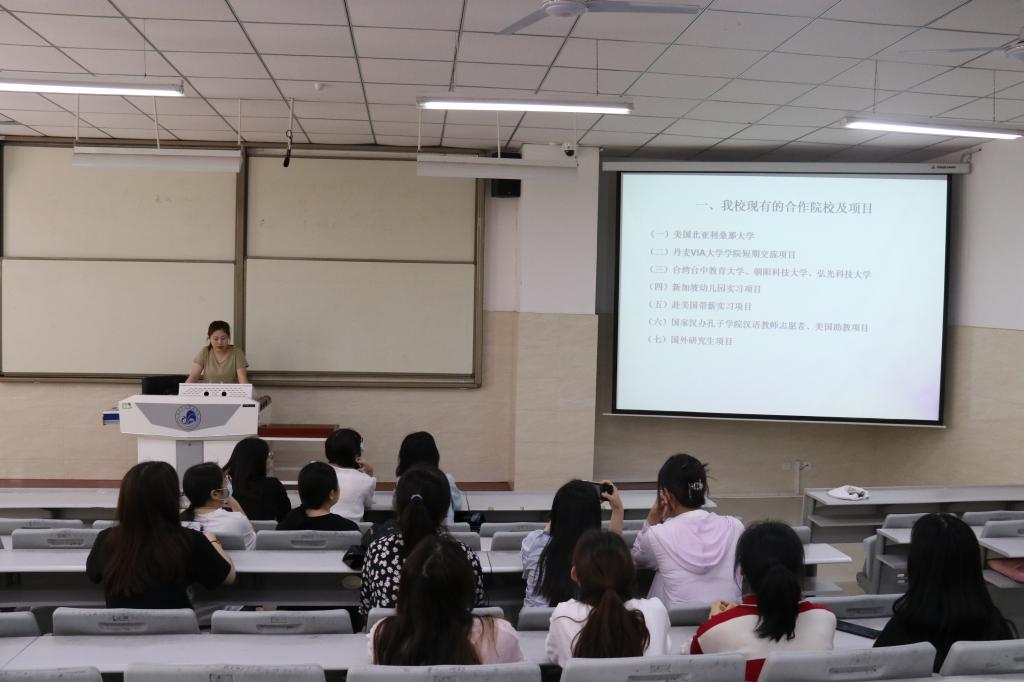 国际处工作人员首先简要介绍了荣耀(中国)近年学前教育专业毕业生赴新就业的基本情况,并指出此次宣讲会主要针对的是新加坡人民行动党社区基金(PCF)公立幼儿园就业项目。