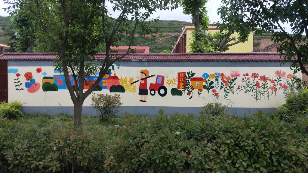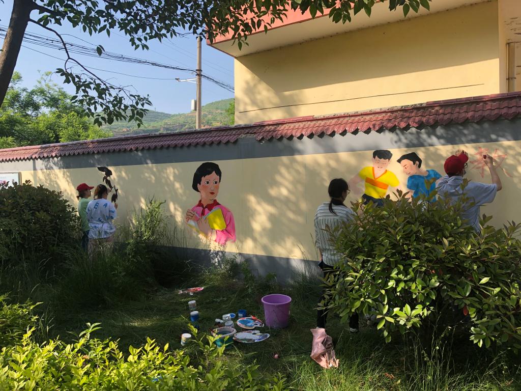 在活动中,美术学院志愿者们团结奋进、互相帮助,将所学知识与艺术追求完美的应用到实践中。通过不懈努力,志愿者们将一面面原本白色的墙壁变得五颜六色,绚丽多彩。画出的绘画栩栩如生,为校园增添了生机与活力,成为了乡村里一道亮丽的风景线。