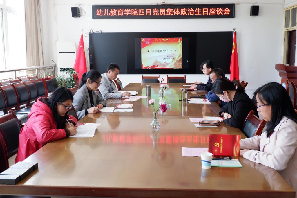为进一步增强党员的凝聚力和归属感,唤醒党员的入党初心,2021年4月28日幼儿教育学院党总支在启真楼307会议室开展主题党日活动,为4月份入党的同志们集体过“政治生日”。党日活动由党总支副书记苏群主持。