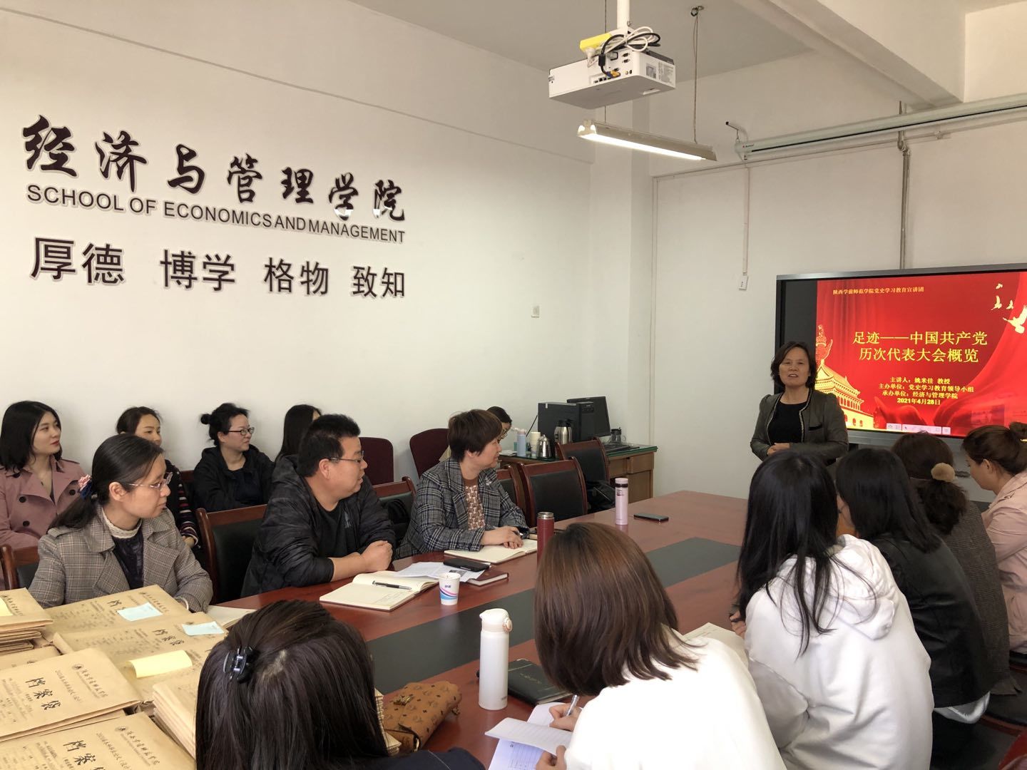 为扎实开展党史学习教育,引导我院广大党员深入学习共产党人为理想信念奋斗的光辉历史,2021年4月28日下午,经济与管理学院党总支举办党史学习教育专题辅导报告会。学校党史学习教育宣讲团成员、马克思主义学院教授姚米佳受邀作本次辅导报告。报告会由学院党总支书记张建辉主持。学院全体教师党员参加学习。