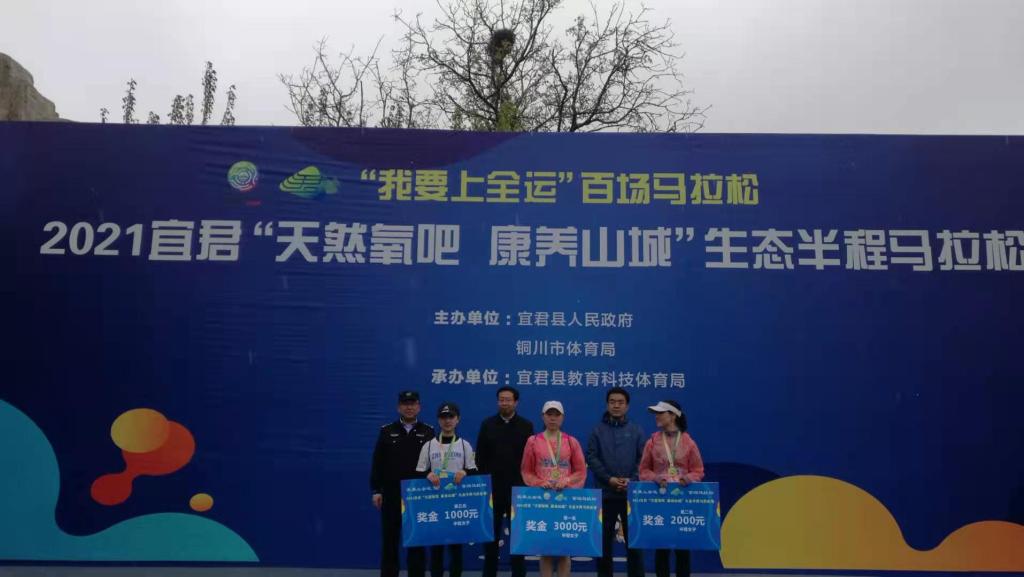 2021年4月24日上午10:00,在淅淅沥沥的春雨中,“我要上全运”百场马拉松2021宜君“天然氧吧 康养山城”生态半程马拉松在宜君县城北公园鸣枪开赛。本届宜君马拉松设置半程马拉松、全民全运健步走两个组别,约有1000人参赛。赛道起终点为宜君城北公园,折返点设在战国魏长城遗址,途经7个大小村落。