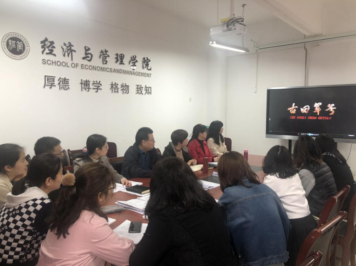 为深入学习贯彻习近平总书记在党史学习教育动员大会上的重要讲话精神,落实我院有关党史学习教育的安排部署,充分发挥红色文化主题电影的教育引导作用,引导广大党员重温党的光辉历史,继承和弘扬党的优良传统,2021年4月14日下午,经济与管理学院党总支开展红色观影主题党日活动,组织教师党员集体观看重大党史题材影片《古田军号》。