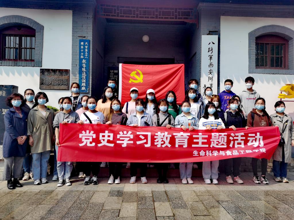 为了深入开展党史学习教育,2021年4月8日,生命科学与食品工程学院党员工作站组织开展了“学党史、悟思想、办实事、开新局”党史学习教育主题党日活动,生命科学与食品工程学院党总支副书记郑美霞、学生第一支部书记高甜甜带领学生党员参观了西安八路军办事处纪念馆,重温党的历史,传承红色基因,汲取奋进力量,启航新征程。
