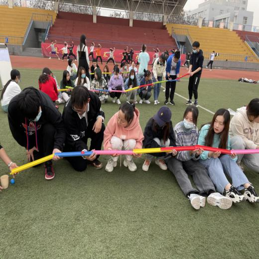 素质拓展训练是一种能培养团队协作意识和拼搏精神,形成团结互助的团队气氛的素质综合教育活动;能有效增进个体的沟通和表达能力,增强对集体的参与意识和责任心。为更好地开展本次素质拓展活动,大学生心理健康教育与指导中心李菁、牛雪婷经过了前期专业的培训,精心的准备,为本场活动做了详尽的方案。本场素质拓展训练共有五个项目“珠行万里,不倒森林,袋鼠跳,无敌风火轮,同心鼓”,每场活动先进行随机分组,带队教练带领大家熟悉彼此,在每个队选队长,起队名,画队旗之后,由带队教练依次介绍每项活动的活动流程及规则。在整个活动中,同学们积极参与,情绪高涨,整场活动活泼轻松,热烈异常。