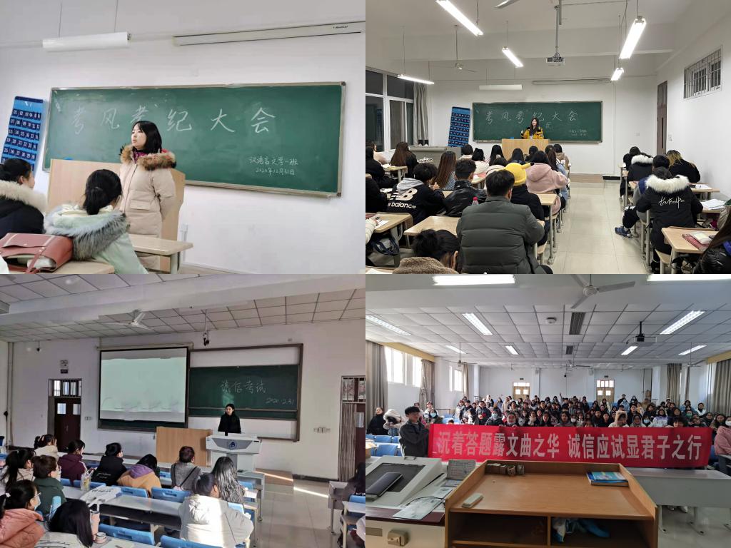 2020年12月31日和2021年1月3日晚,按照学院要求,文学院各班组织召开考风考纪教育主题班会。本次活动由各年级辅导员老师组织开展。会上,辅导员老师为同学们仔细讲述了考前复习的技巧方法和考试期间的注意事项,并结合相关案例讲解了学校对考试作弊行为的认定和处理办法,提醒学生树立诚信考试的意识,认清舞弊行为的危害和考试违规的严重后果。最后,辅导员老师组织同学们一起温习了《学生手册》中考试违纪处分的相关细则。此外,2018级和2019级学生还举行了诚信考试签名活动。