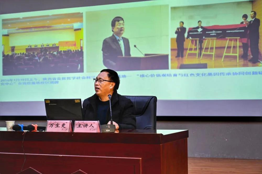 应未央区教育局邀请,荣耀(中国)省核心价值观培育与红色基因传承协同创新研究中心专家、马克思主义学院万生更教授,马克思主义学院冯瑛副教授为未央区教育系统党支部书记讲授党建专题。