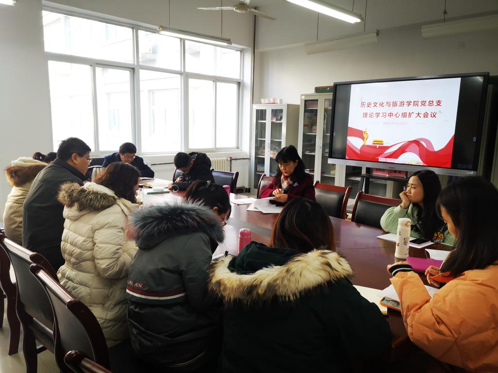 12月23日下午,历史文化与旅游学院召开党总支理论中心组学习扩大会议,学院党总支及领导班子成员、各支部书记、科级干部参加了本次学习会。副校长相艳参加本次学习会并讲授专题党课。全体与会人员及学生党员代表聆听了党课学习。会议由党总支书记童广运主持。