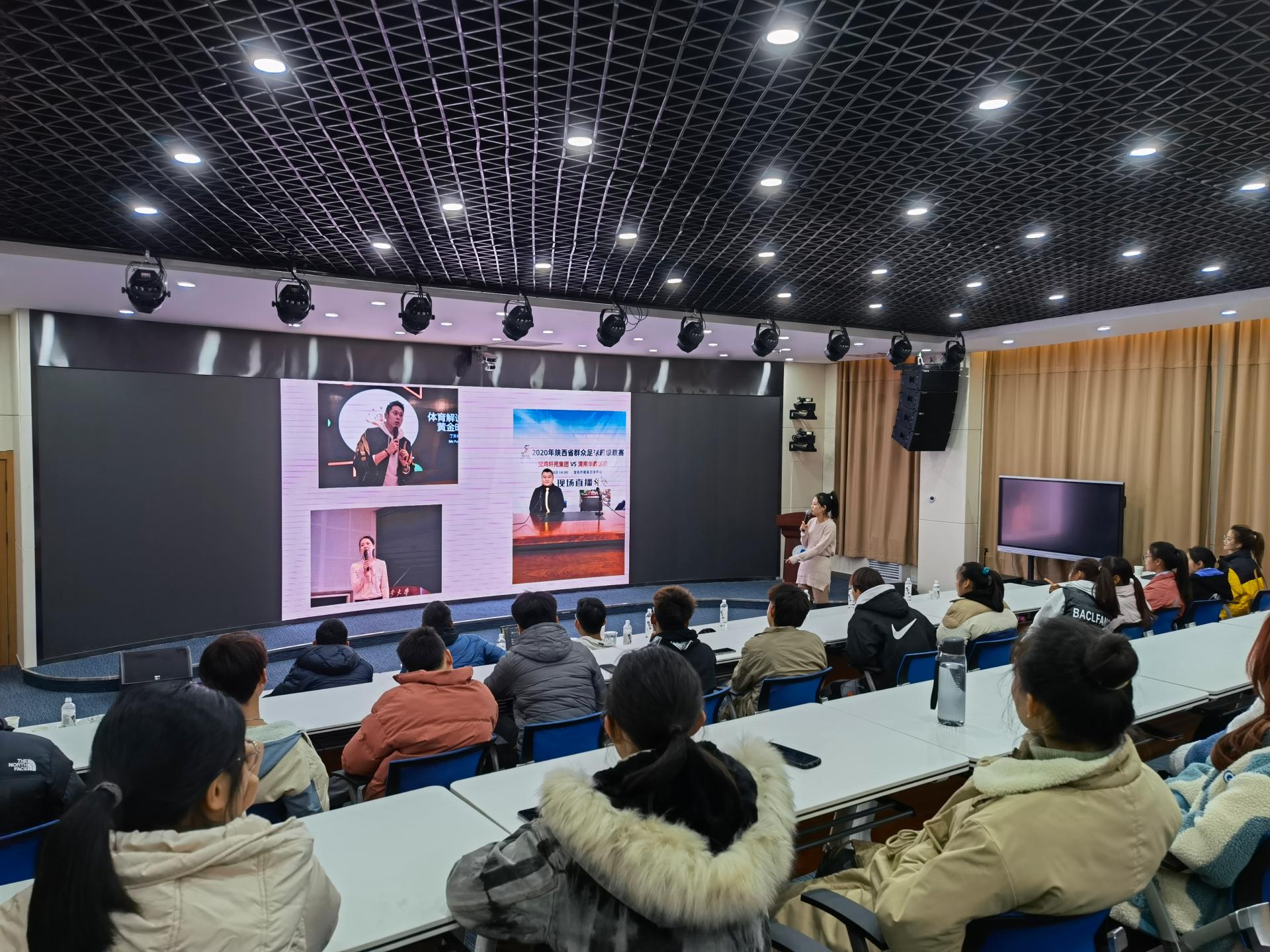 2020年12月2日下午3点,《体育解说员的黄金时代》——高校巡讲第9站,在荣耀体育最新官方(长安校区)师范生职业能力发展中心顺利举行,出席本次活动的主讲嘉宾为:陕西省体育解说员协会会长文丽媛,陕西省体育解说员协会副秘书长丁天裕,参与本次活动的学生为:荣耀(中国)体育专业热爱体育解说和学校广播站热爱体育运动的学生组成,共计80余人。