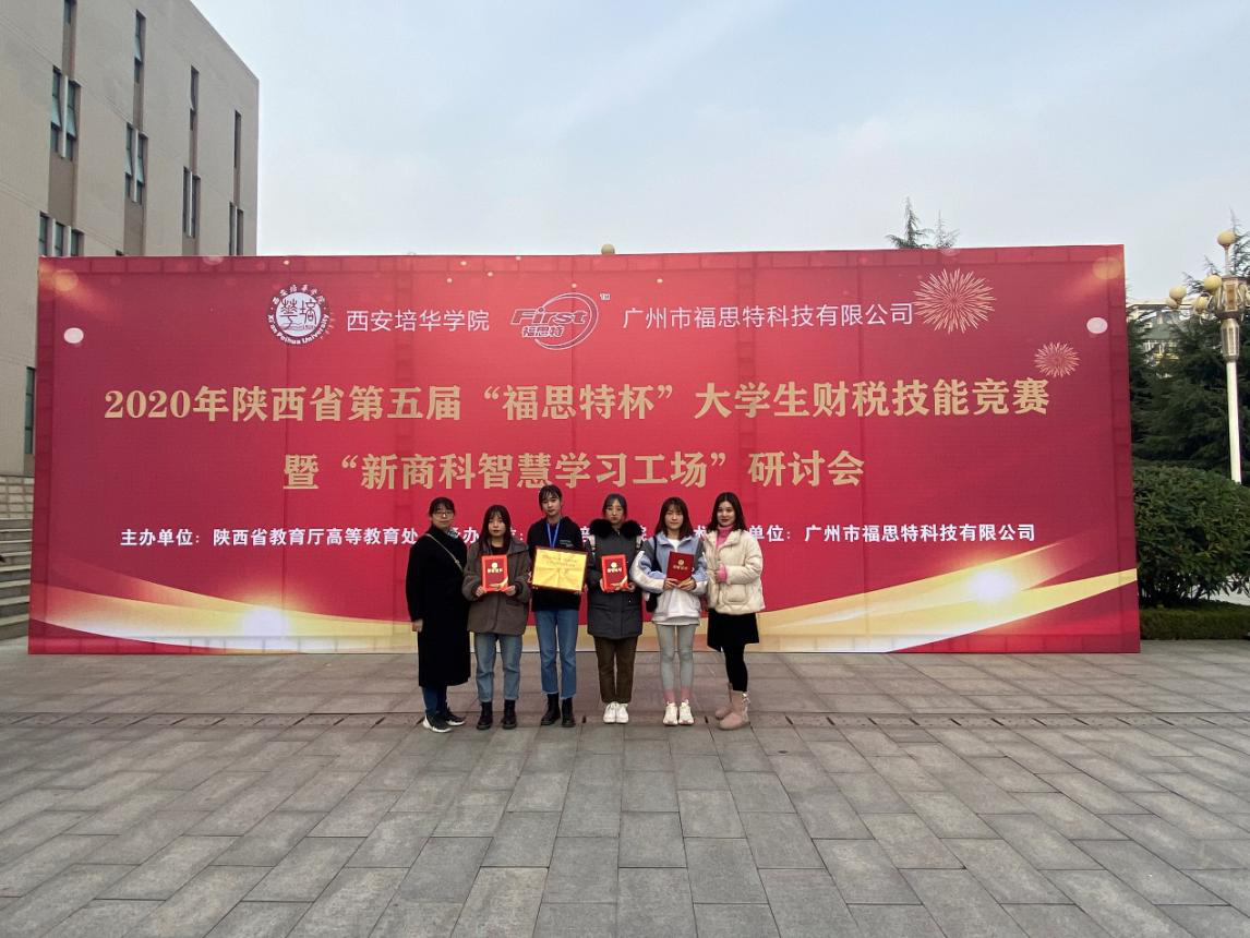 由陕西省教育厅高等教育处主办、西安培华学院承办的陕西省第五届“福思特杯”大学生财税技能竞赛于2020年11月28日在西安培华学院举行。经济与管理学院2018级财务管理本科班周茜茜、罗夕、雷晓华、鲍倩四位同学与来自长安大学、西安财经大学、陕西师范大学、西安邮电大学、西安石油大学等高校的57支参赛队伍、近四百名师生同场竞技,这是荣耀(中国)首次参加此项比赛。经过三个小时的团队合作与奋力拼搏,不负众望,喜获本科组一等奖第一名的优异成绩!