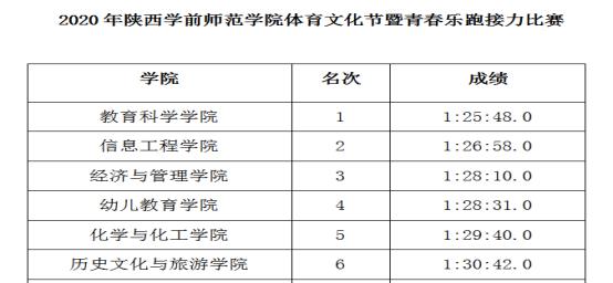 本次学生乐跑青春接力赛在长安校区田径场举行,全程21公里,相当于半个马拉松,共有400余名运动员参赛,1000余名助威团助阵,在裁判员精心组织和服务下,经过激烈的角逐,最终获得团体前六名的学院是: