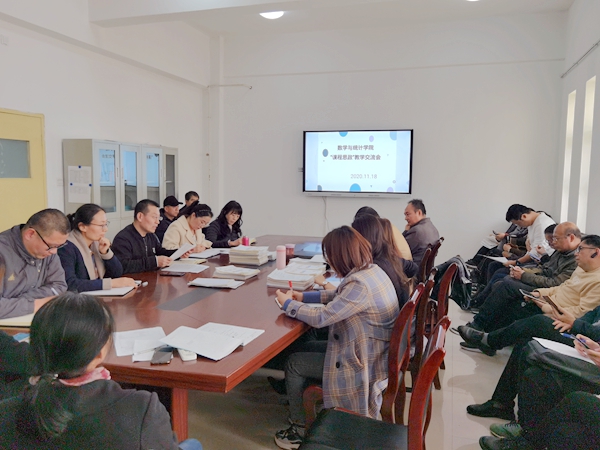 为深入贯彻落实习近平总书记在高校思想政治理论课教师座谈会上的重要讲话精神,推进大中小学思政课一体化建设研究,提升我院师范生素养,11月18日下午2点,数学与统计学院在2教楼D319召开课程思政教学交流会。我院党政领导和全体教职员工参加会议、会议由李宏飞院长主持。