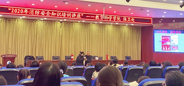为了进一步增强学生消防安全意识,创建平安校园,2020年11月16日下午,教育科学学院联合学校保卫处聘请了陕西省公安厅企事业单位保卫协会专职消防专家高喜茹教授在图书馆报告厅为全体2020级新生举行“2020年消防安全知识培训讲座”。