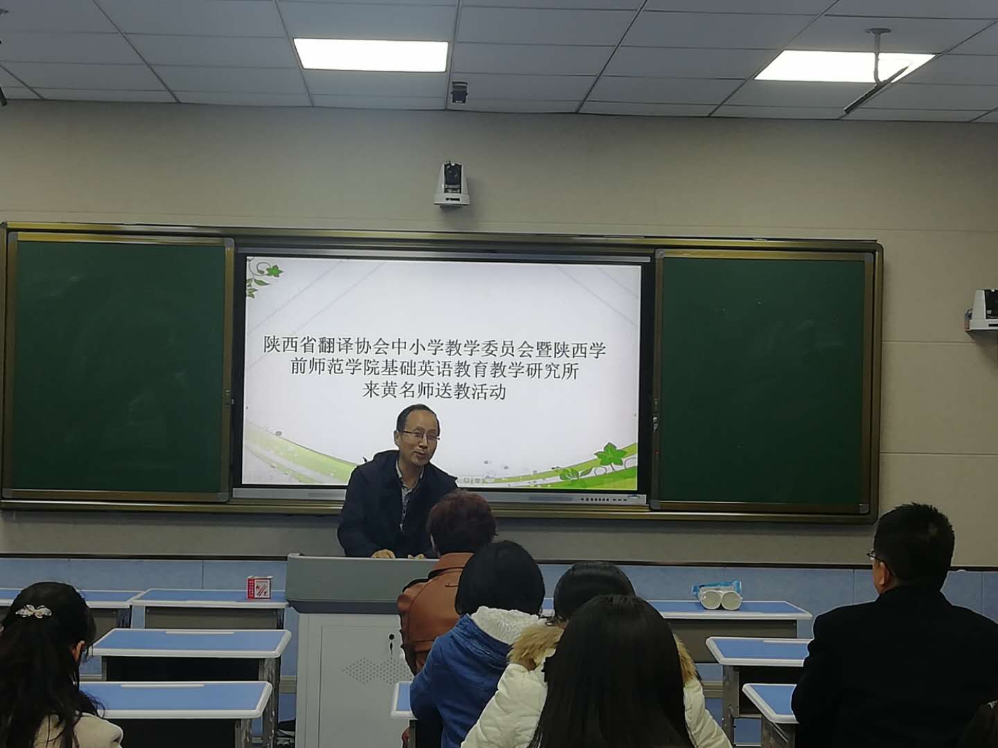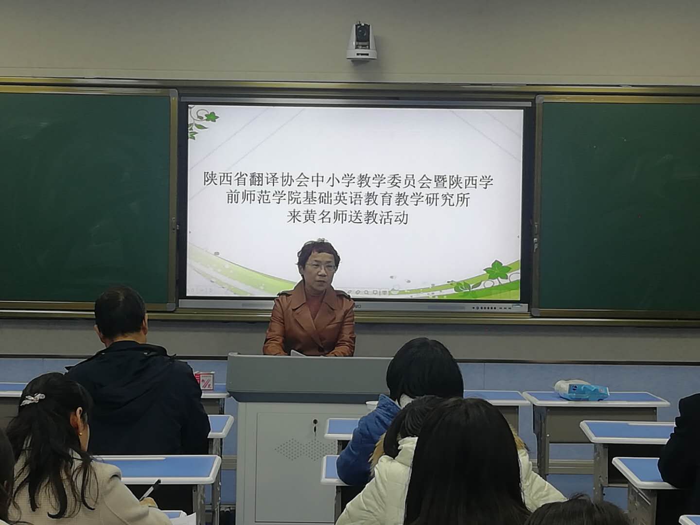 受延安黄龙县教研室邀请,11月6日,外国语学院、校基础英语教育教学研究所联合陕西省翻译协会赴黄龙中学开展名师送教和中考英语复习备考专题培训活动。参加此次活动的有外国语学院张慧军院长、张莉娟副院长、陕西翻译协会中小学委员会主任省级教学能手李星老师和西安市碑林区教学能手西安市第六中学初中英语教研组长张晓萌老师。黄龙县所有初中英语教师30余人全程参加此次名师送教和培训活动。同去的还有外国语学院18、19级英语本科班拟参加学校师范生技能比赛的10名学生代表。