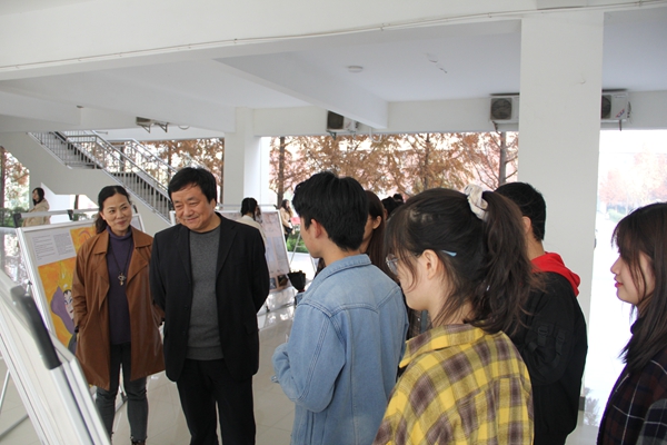 比赛中,党委副书记栾高明也到场观看指导。栾书记仔细地观看了每块展板。他指出英文文化节的举办立意深刻,活动设计好。肯定了同学们的创新设计,也要求大家进一步扎实准备、明确展板的内容。
