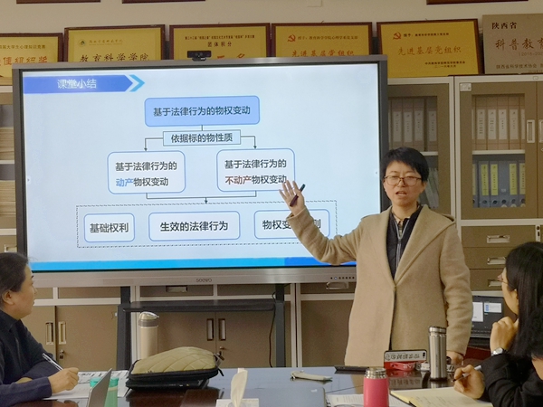 为了提高青年教师的教学能力,推动院系教学质量的提升,教育科学学院于11月12日邀请马克思主义学院、第五届全国高校青年教师教学竞赛二等奖获奖者周黎副教授给全院青年教师做“基于法律行为的物权变动”教学比赛示范课。本次活动由教学副院长吕银芳同志主持,全院21名青年教师参加活动。