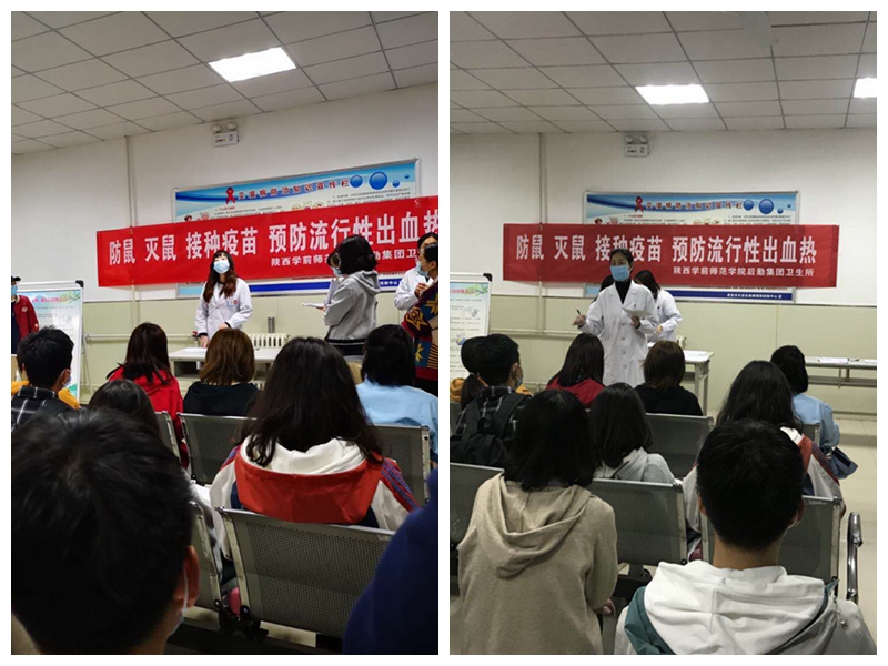 在培训会上,防保科韩云医师首先进行了出血热相关知识的健康讲座,简单阐述了出血热的定义、传染源、传播途径、临床表现及防控措施,告诉同学们接种出血热疫苗是最有效的预防措施。重点对出血热疫苗接种相关事宜进行培训,认真详细地向同学们讲解每一张表格及注意事项。