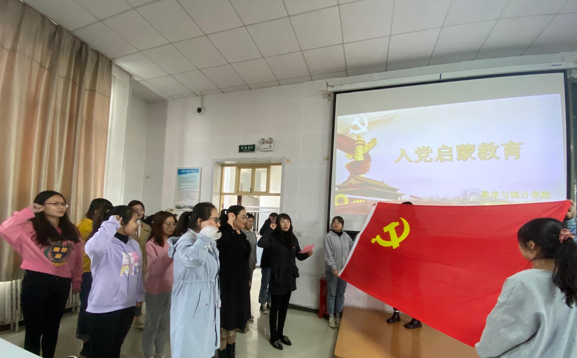 【数学与统计学院】为加强党的队伍建设,切实做好学生党员发展、培养和教育工作,积极引导大学生自觉争做中国特色社会主义坚定信仰者和忠实实践者,10月21日下午,数学与统计学院在积学楼B2阶梯教室召开2020级新生入党启蒙教育大会。数统院党总支领导、辅导员和学生党支部书记、学生党员、入党积极分子和2020级全体新生共150余人参加了本次大会。大会由学生第一党支部书记何静主持。