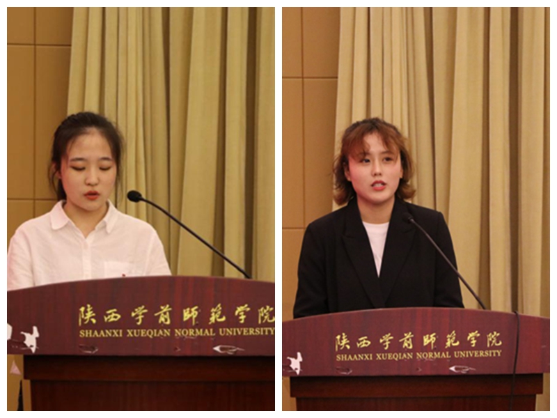 获奖学生代表2018级汉语言文学专业吕梓璇同学和2019级汉语言文学专业刘册同学分别在会上发言。她们分享了自己的获奖感受和加强班级建设与管理的经验,表示在今后还要“百尺竿头更进一步”。她们还鼓励同学们要学会努力与坚持,更要学会自律和感恩,不忘初心和梦想,珍惜青春时光,奋发有为。