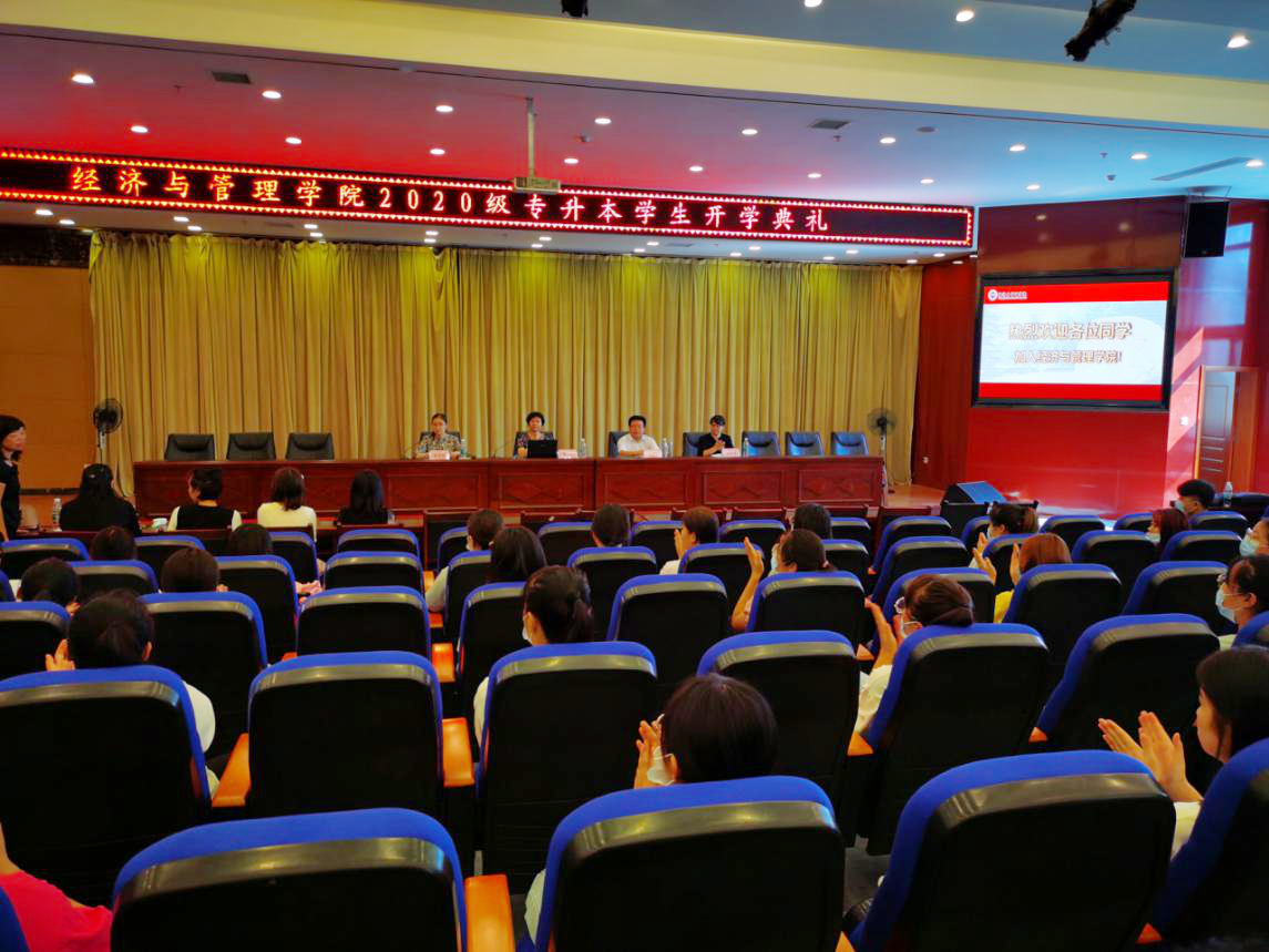 9月7日上午,在图书馆报告厅举行了经济与管理学院2020级专升本新生开学典礼,拉开了入学教育的序幕。学院领导班子、各教研室主任和学院2020级专升本全体新生出席了典礼,典礼由陈秀端副院长主持。首先,崔洁院长从学院概况、加强本科教学举措、教学工作特色、成长在陕师院四个方面介绍了经济与管理学院的基本情况和特色,内容图文并茂、形象生动,让同学们对经管院的情况有了全面具体的了解,鼓励同学们珍惜时光,奋发图强,在陕师院再创辉煌。其次,刘家瑛副院长从上课、考核、实习、论文四个主题入手,对荣耀(中国)关于学籍管理、学生管理、考试管理、实习管理和毕业论文管理方面的各种规定进行了全面深入的解读,带领同学们学习和了解了未来学习生活中的重点和红线,做到有的放矢、严守底线。再次,新生代表做了主题发言,畅想了未来的校园生活并表达了努力学习、热爱生活、回报社会、建设国家的愿望和决心。最后,张建辉书记从个人成长角度对同学们提出了殷切希望,鼓励同学们规划好大学的学习生活,把握好大学生活的主旋律,不断提升自身修养,努力提高综合素质。本次开学典礼组织有序、内容充实,同学们纷纷表示获益良多,现场时时响起热烈的掌声。