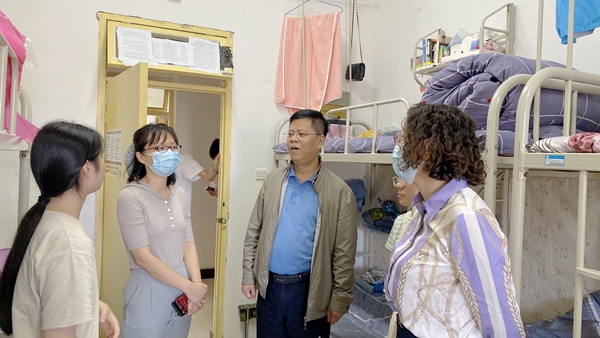 9月15日上午,学院领导、新生辅导员一起走访了新生宿舍,对他们的到来表示热烈的欢迎,同时对新生报道入住等情况进行了详细询问,尤其是对外省学生和少数民族学生的家庭情况做了交谈了解,给新生们带去了学院的慰问与关怀,勉励他们尽快熟悉校园新环境,适应大学生活,学会独立和自我管理,并叮嘱同学们要加强自我防护,积极配合学校的疫情防控举措。