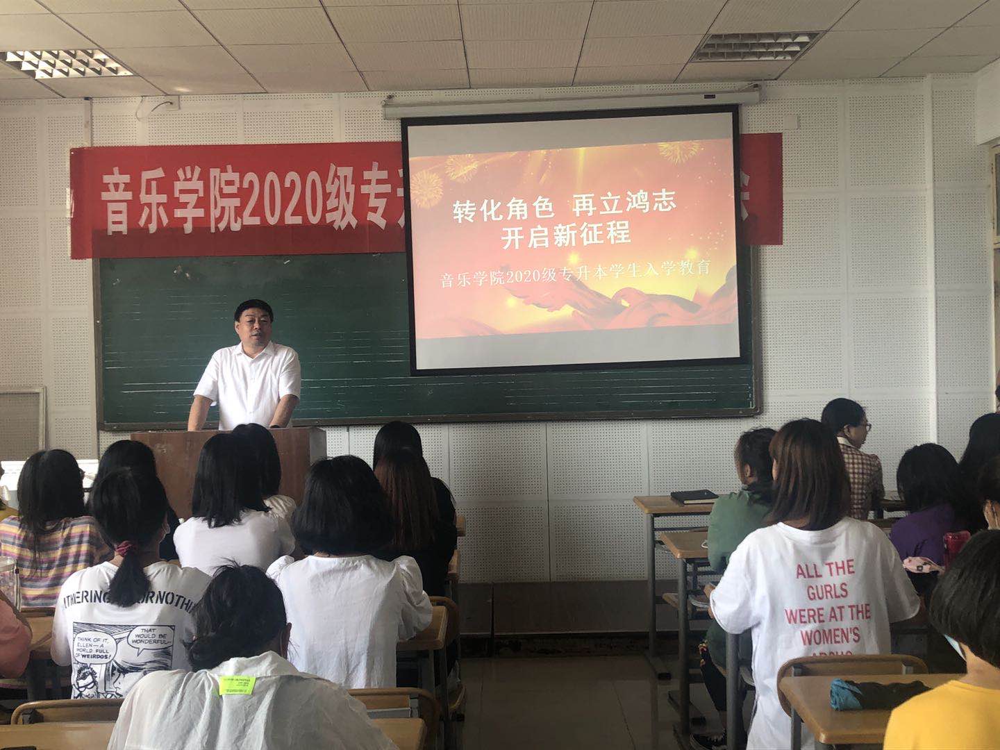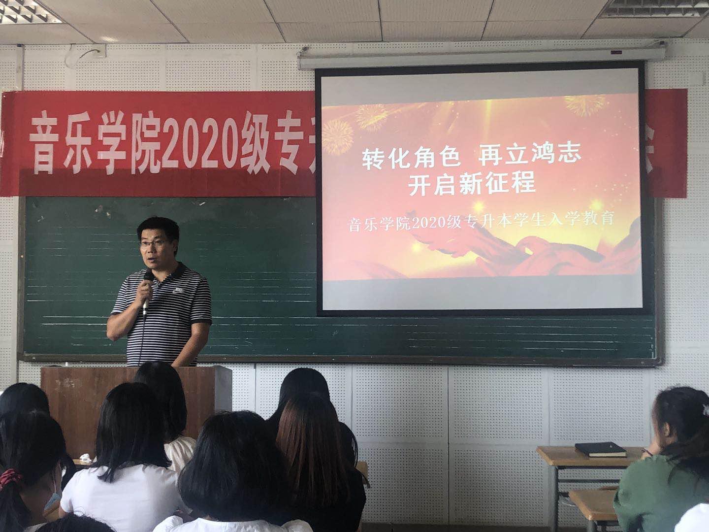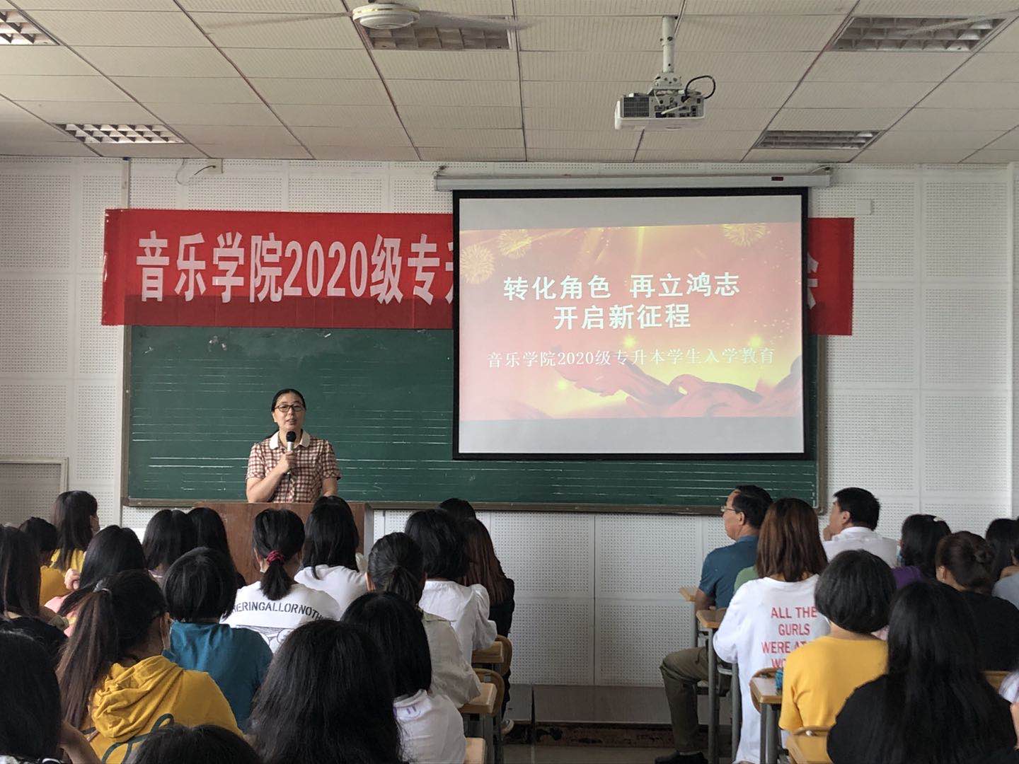 为帮助专升本新生更快地融入新的环境,建立清晰的专业认知,明确学校规章制度,知悉日后就业方向,音乐学院以“ 转化角色、再立鸿志,开启新征程”为主题,于9月8日上午在启真楼615教室召开2020级专升本学生入学教育大会。会议由学院党支部副书记刘蓉辉同志主持。学院党政领导、系主任、辅导员代表以及2020级专升本全体新生参加了会议。