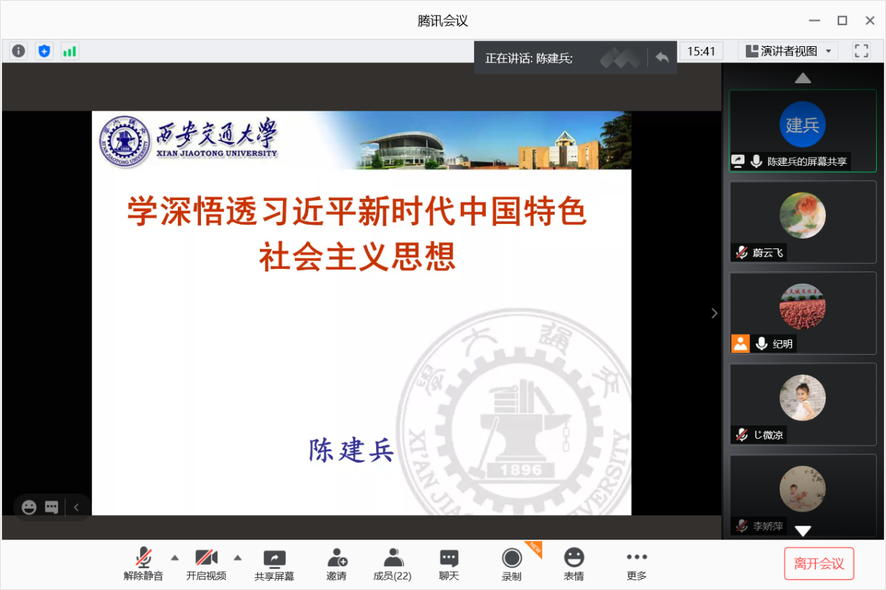9月1日上午9点,马克思主义学院通过腾讯会议举办了第一期“名师论坛”。会议邀请西安交通大学马克思主义学院副院长、博士生导师陈建兵教授为马院全体教师做了“学深悟透习近平新时代中国特色社会主义思想”报告。会议由纪明院长主持。