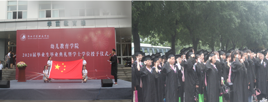 庚子年初,来势迅猛的新冠疫情骤然爆发,2020届毕业们生经历了最特殊的毕业季。2020年7月17日上午,伴随着蒙蒙细雨,幼儿教育学院2020届毕业生毕业典礼暨学士学位授予仪式在启真楼前如期举行。出席毕业典礼的有幼儿教育学院党政领导、教师代表、全体辅导员、2020届全体毕业生。毕业典礼由党总支副书记苏群主持。