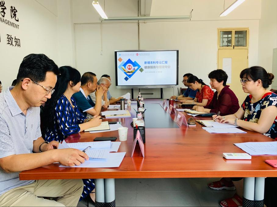 会上,崔院长对专家的到来表示欢迎和感谢,向专家介绍了申报背景和专业的基本情况,希望专家对新专业申报材料提出修改意见和建议。接下来,梅林晨老师汇报了专业申报的必要性、现有优势、师资队伍、特色等情况。专家肯定了我院此次申报健康服务与管理本科专业的意义与必要性,并围绕人才需求、人才培养目标定位、培养规格、课程设置、师资队伍、实训条件、校企合作办学等方面进行了深入讨论和认真审议,提出了许多建设性的意见和建议。