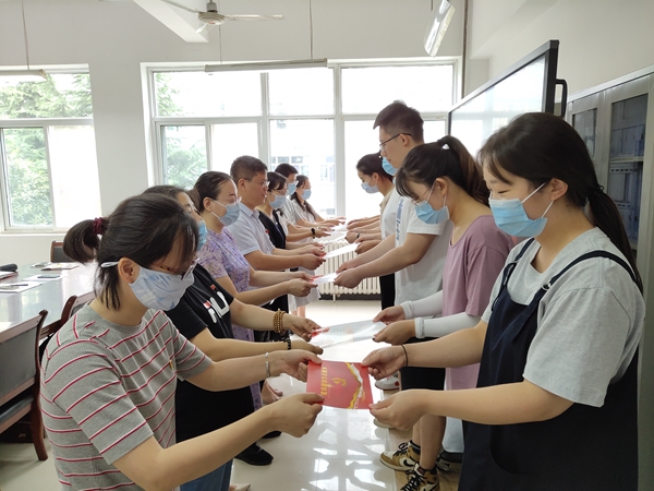 交流发言后,会议开展了“铭记党员身份 牢记初心使命”党员政治生日活动。学院领导和党员教师为8名毕业生党员颁发赠送政治生日贺卡,与他们一起度过了一个具有特殊意义的政治生日。8名学生党员表示,以这样的形式过“政治生日”还是入党后的第一次,也是在学校的最后一次,感谢学校和老师的培养,今后将进一步强化身份意识和责任意识,以更加奋发有为的姿态和优异的工作成就为母校增光添彩。
