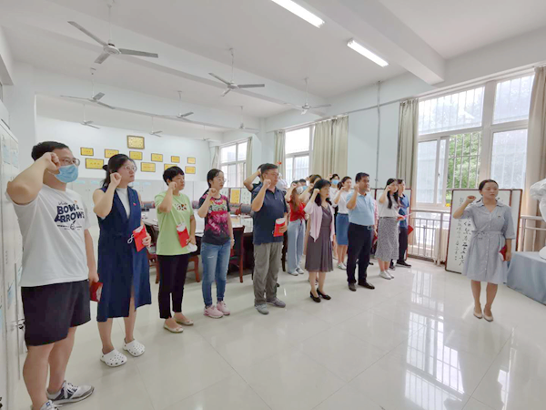 相校长与师生党员们共度“政治生日”,亲自为党员们赠送了生日贺卡,希望师生党员能时刻牢记党员身份,践行入党誓词,不负党的重任,永葆共产党员的先进本色。党员们面向党旗,庄严地举起右手,重温了入党誓词。