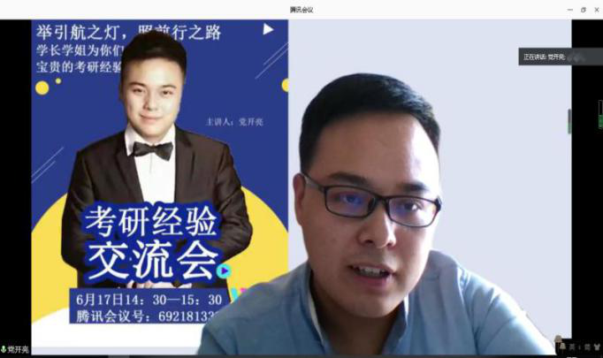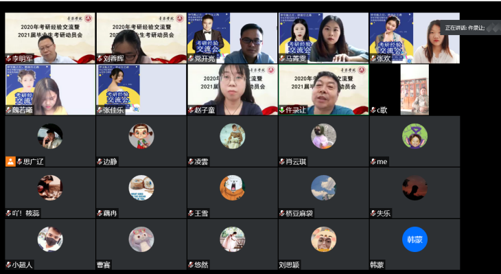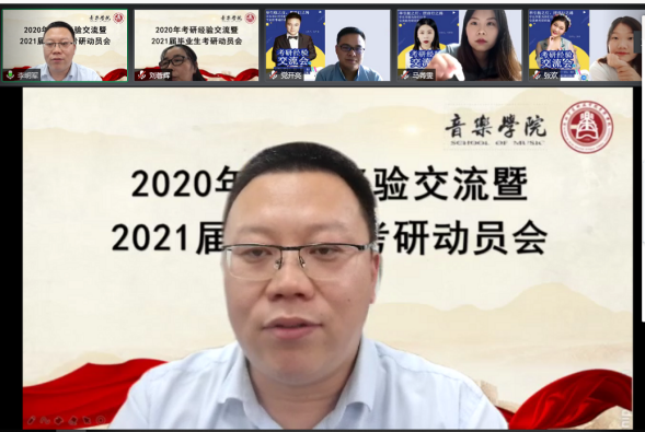为加强学风建设,营造积极向上的学习氛围,总结2020届毕业生考研经验,进一步帮助2021届毕业生全面认识考研,把握考研形势,解答备考过程中遇到的困惑和问题,6月17日下午,音乐学院举行线上考研经验交流暨考研动员会。学院党政领导班子全体成员,各系主任、教学秘书、辅导员,以及2017级全体本科生共100余人参加会议。会议由党总支副书记刘蓉辉同志主持。